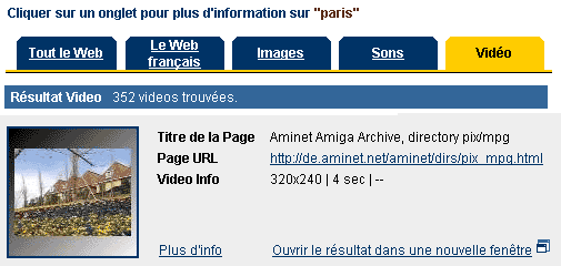une image fixe. La page de résultats fournit également :